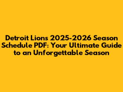Why You Need the Detroit Lions 2025-2026 Schedule PDF in Your Life