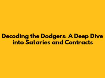 Dodgers Salaries: Decoding The Contract Landscape