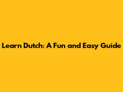 Learn Dutch: A Fun And Easy Guide