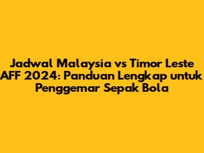 Malaysia vs Timor Leste AFF 2024 - Halo, para penggemar sepak bola! Siapa yang sudah tidak sabar menantikan aksi seru dari timnas kesayangan kita? Tahun 2024 akan menjadi saksi bisu dari pertarungan sengit di ajang AFF (ASEAN Football Federation) antara Malaysia dan Timor Leste. Artikel ini hadir sebagai panduan lengkap yang akan mengupas tuntas segala hal yang perlu kalian ketahui, mulai dari jadwal pertandingan, informasi tim, hingga prediksi menarik. Jadi, siap-siap untuk mencatat tanggal penting dan jangan sampai ketinggalan satu momen pun!