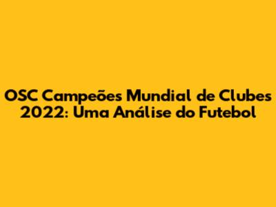 OSC Campeões Mundial De Clubes 2022: Uma Análise Do Futebol