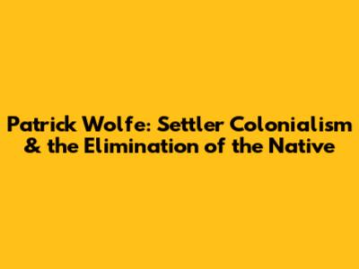 Patrick Wolfe: Settler Colonialism & Native Elimination