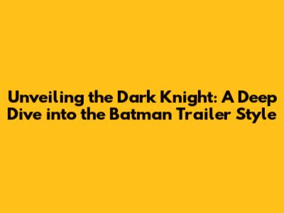 Unveiling The Dark Knight: A Deep Dive Into The Batman Trailer Style